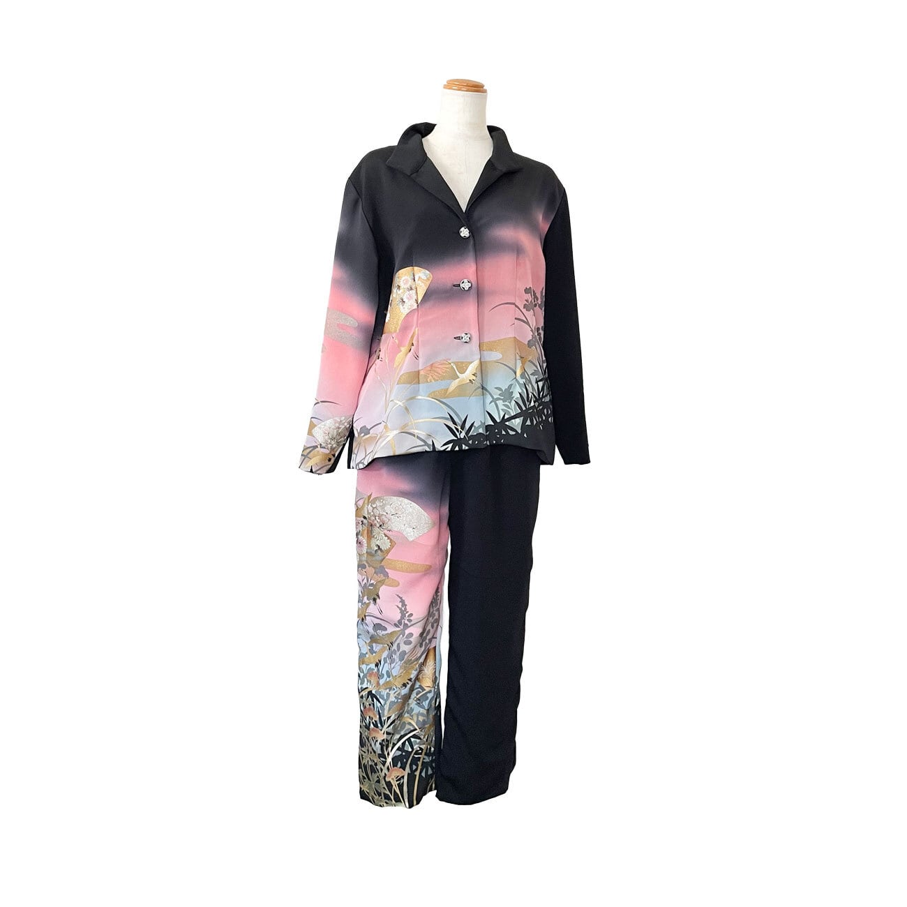 ジャケット&スラックス[ピンク暈しに金彩鶴と扇黒留袖]