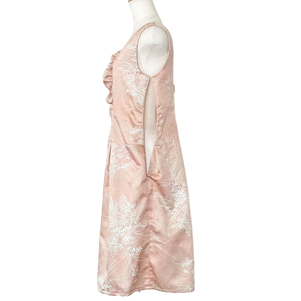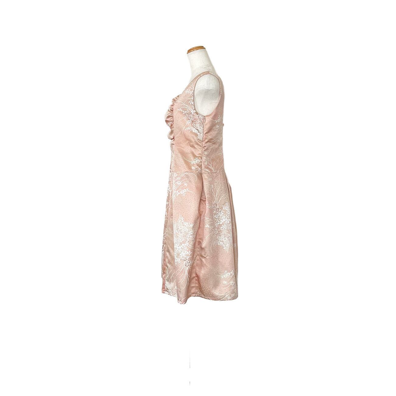バストドレープドレス[ピンク光沢羽織], ジャケット&フレアスカート[グレー紬], フレンチスリーブブラウス[赤幾何学模様銘仙]