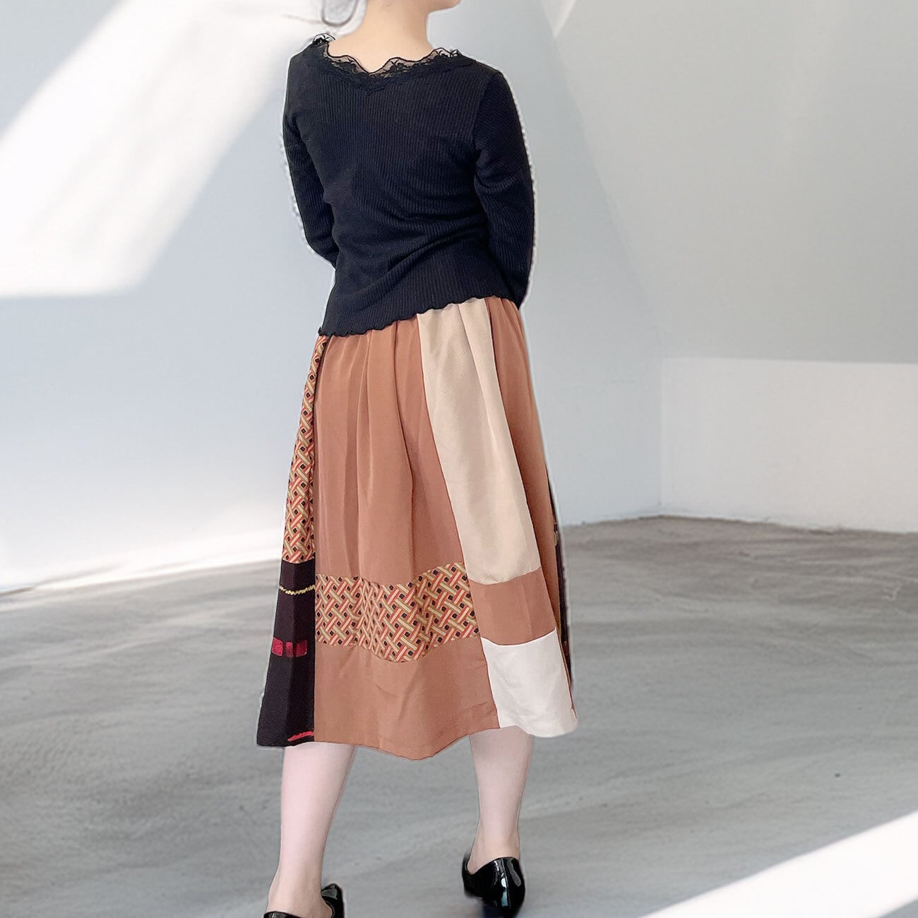 [ヴィンテージ着物生地を組合わせたパッチワークスカート]