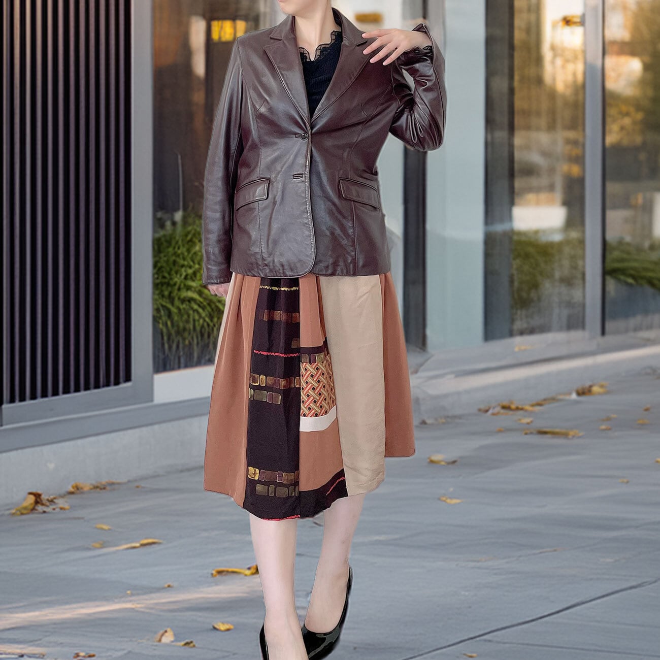 秋らしく、レザージャケットや革ジャンとの甘辛ミックスコーデにも優秀スカートです。