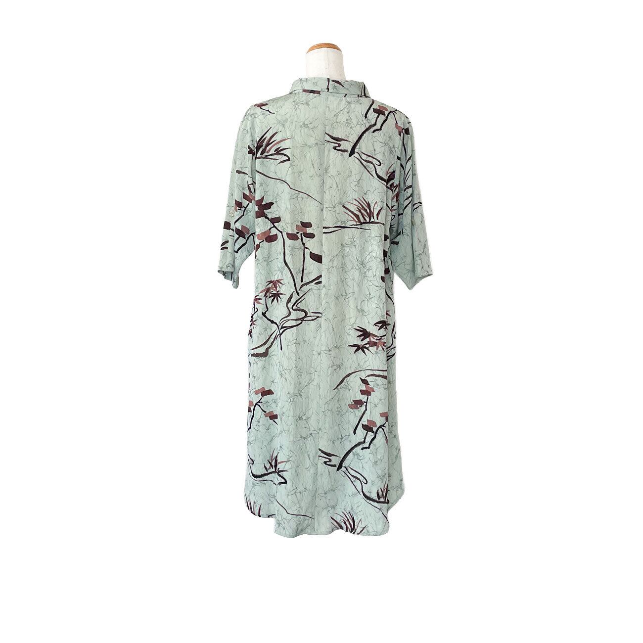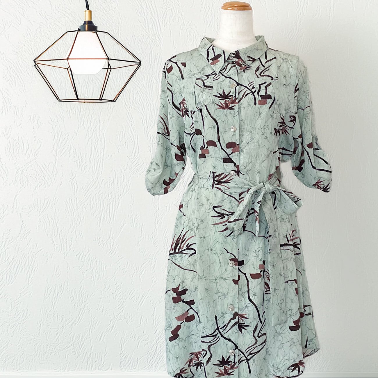 ヴィンテージ着物をリメイクしたシャツカラーのサファリライクワンピースです。