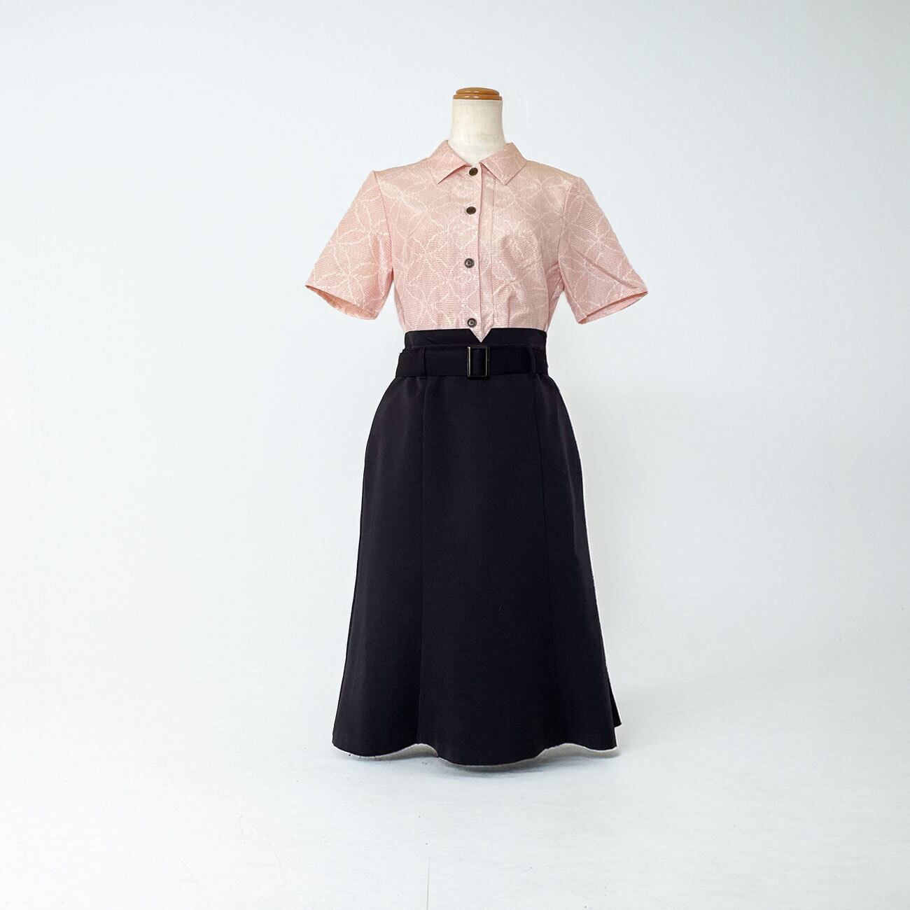 シャツカラーとフロントボタンで、きちんと感をキープ。