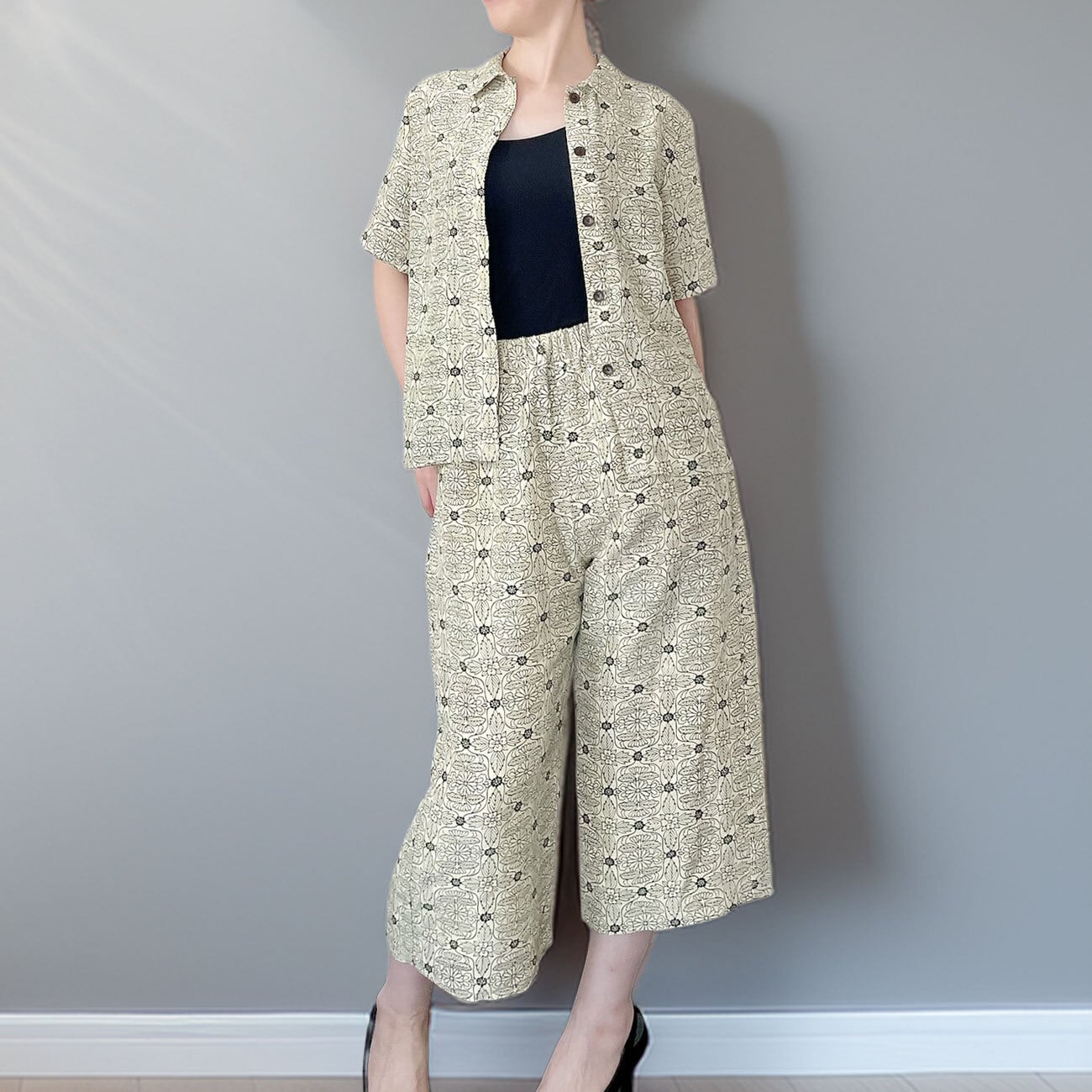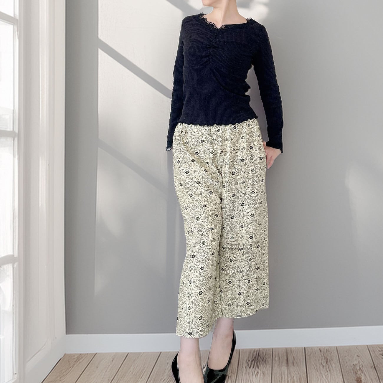 この商品ページはパンツのみの販売ですが、同じ生地のブラウスもございます。