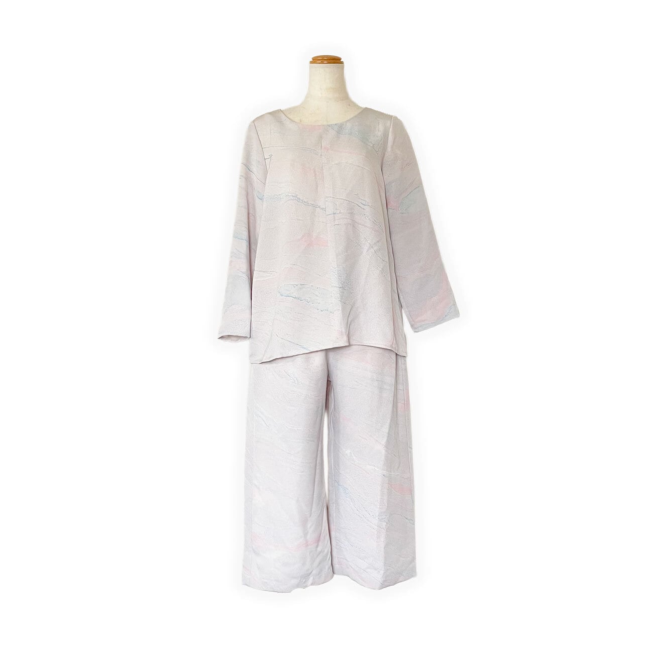 このチュニックに使われているのは、かつて着物として時を重ねたシルク。