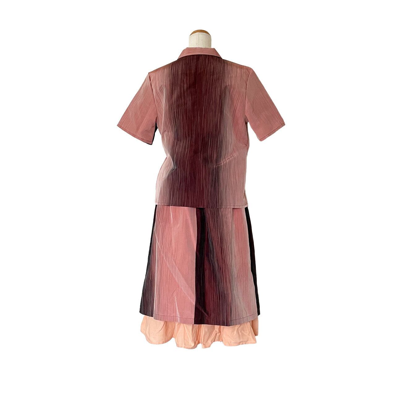このスカートの魅力は、動くたびに生まれる二重のリズム。