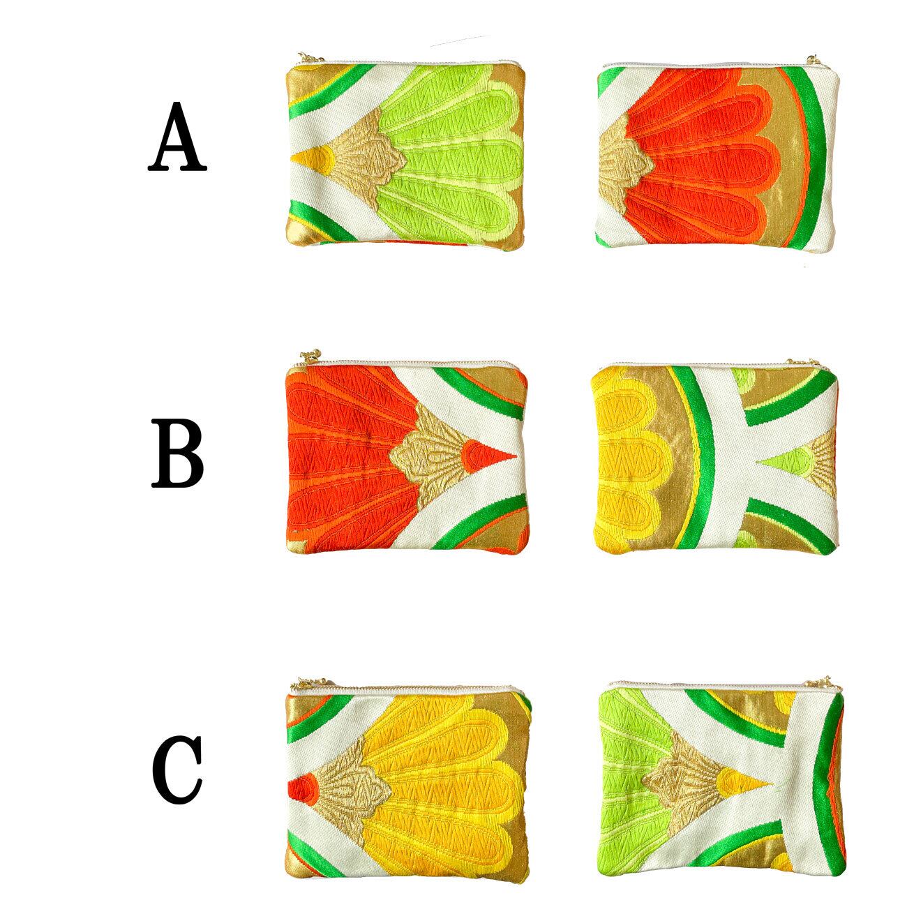 [ヴィンテージシルクの帯を素材にしたハンドサイズポーチ]