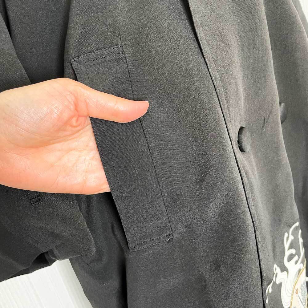 Sサイズ/ トレンチコート[淡青扇と荒波黒留袖]