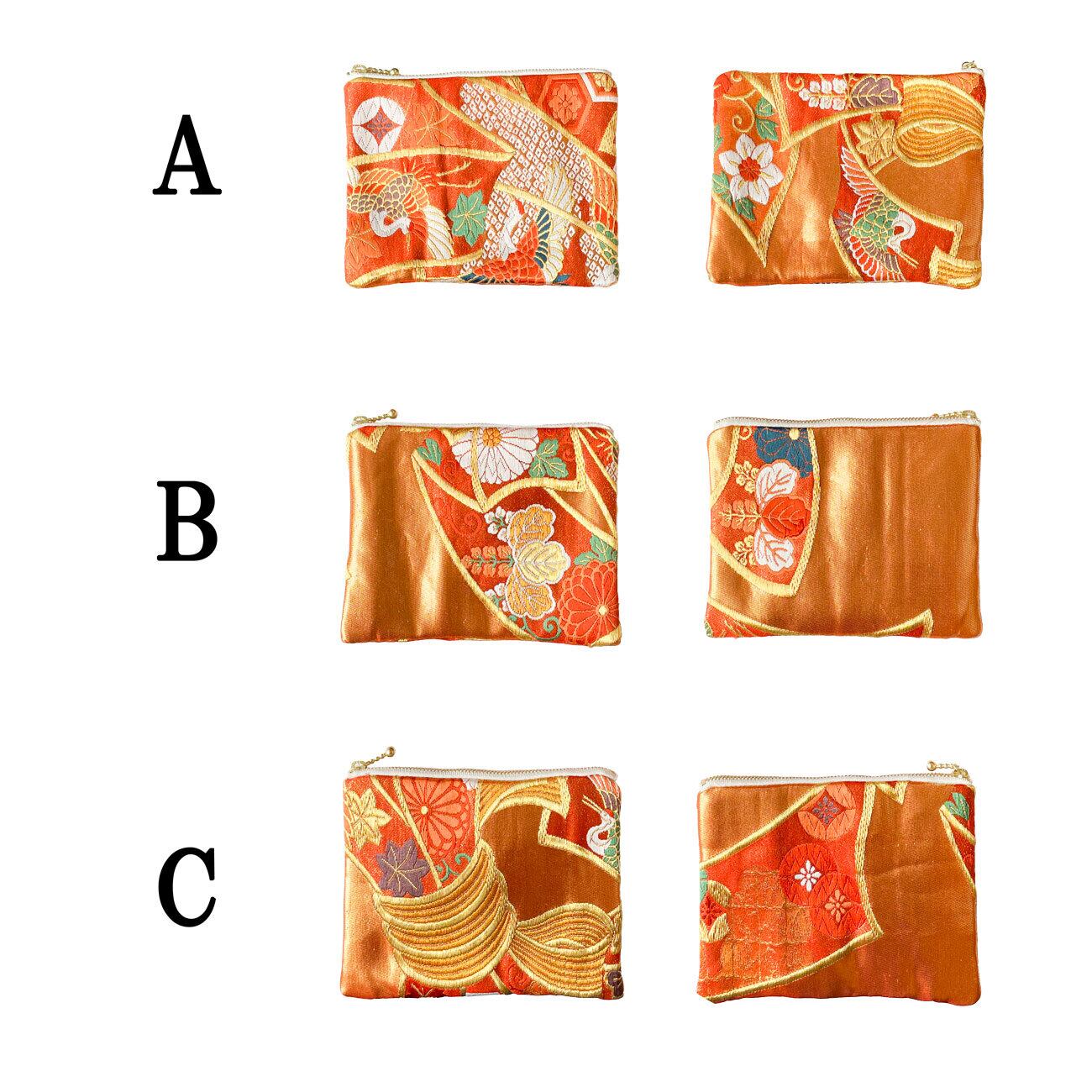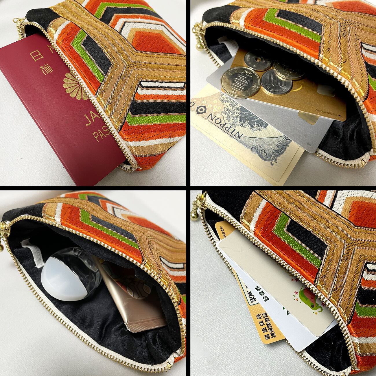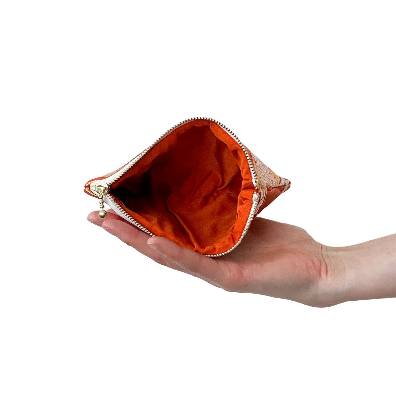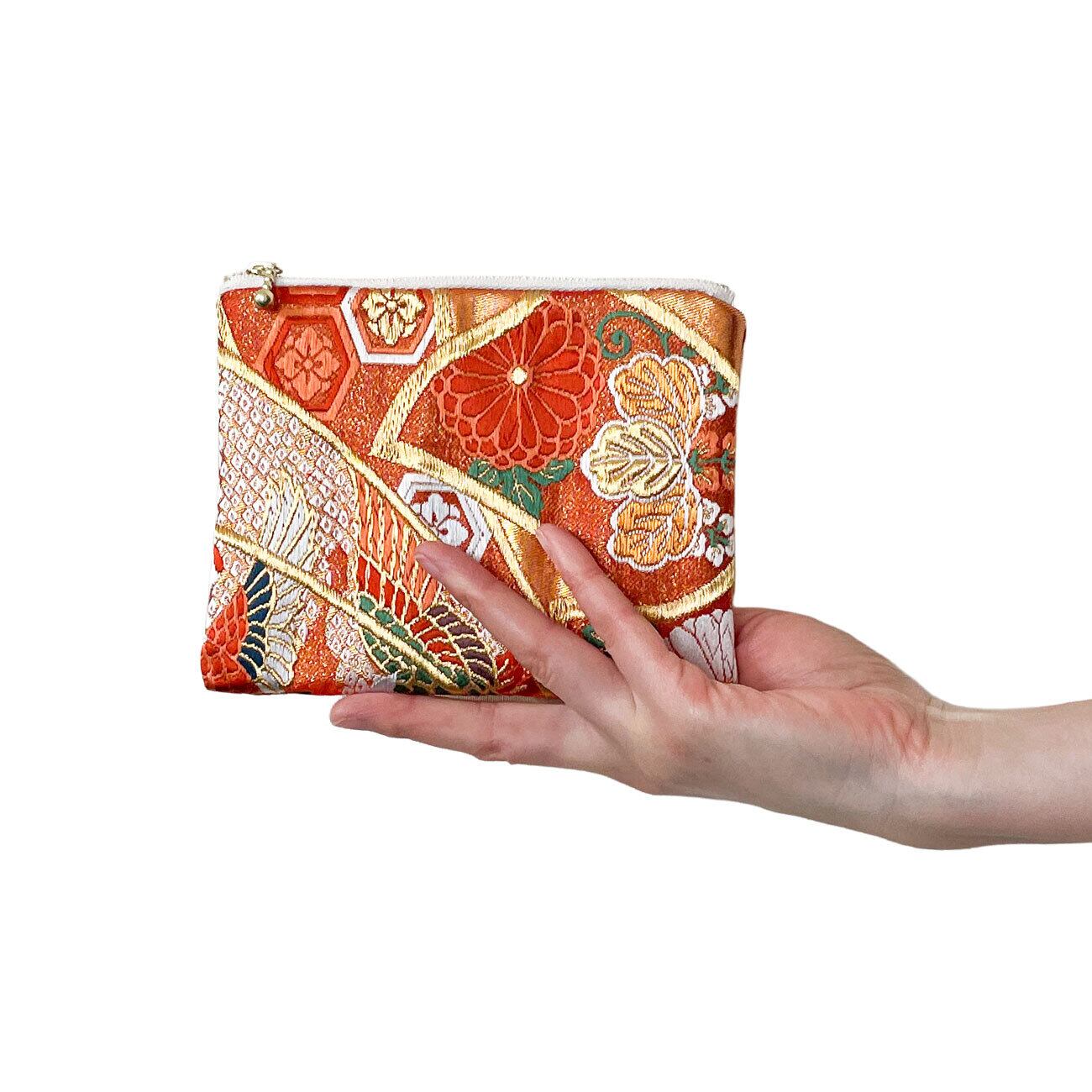 [ヴィンテージシルクの帯を素材にしたハンドサイズポーチ]