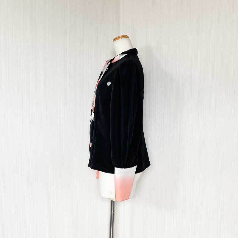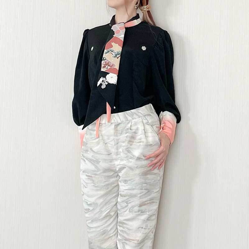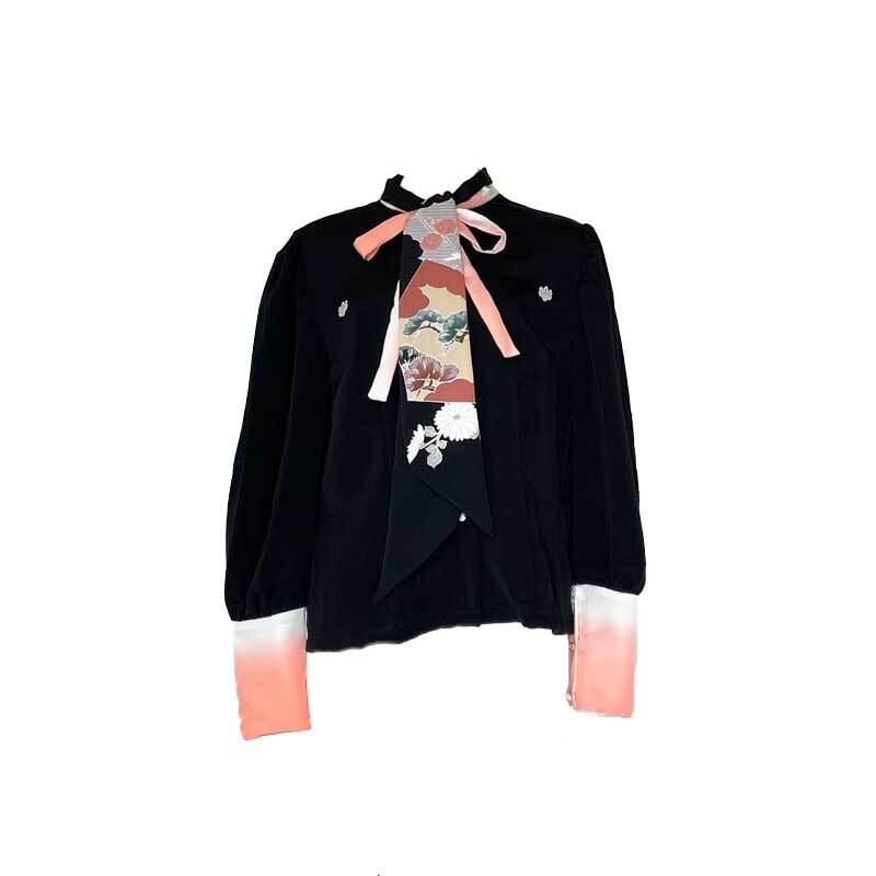 ヴィンテージ着物をリメイクしたリボンタイブラウスです。
