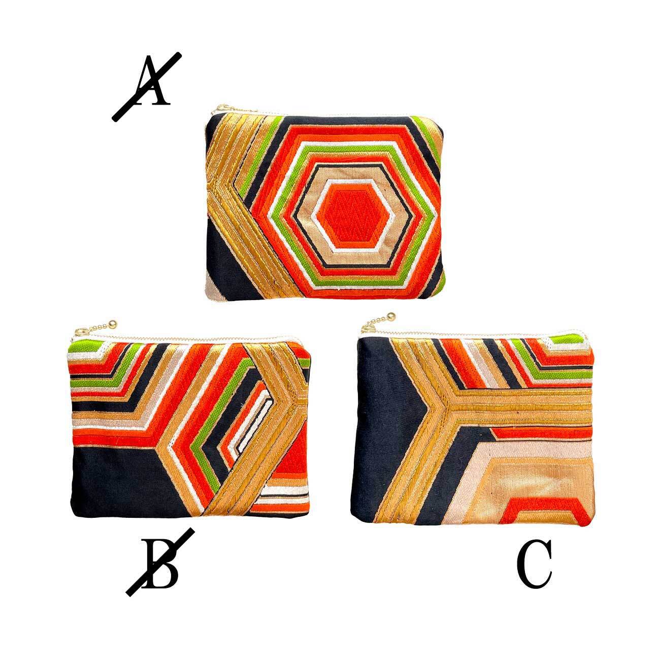 [ヴィンテージシルクの帯を素材にしたハンドサイズポーチ]